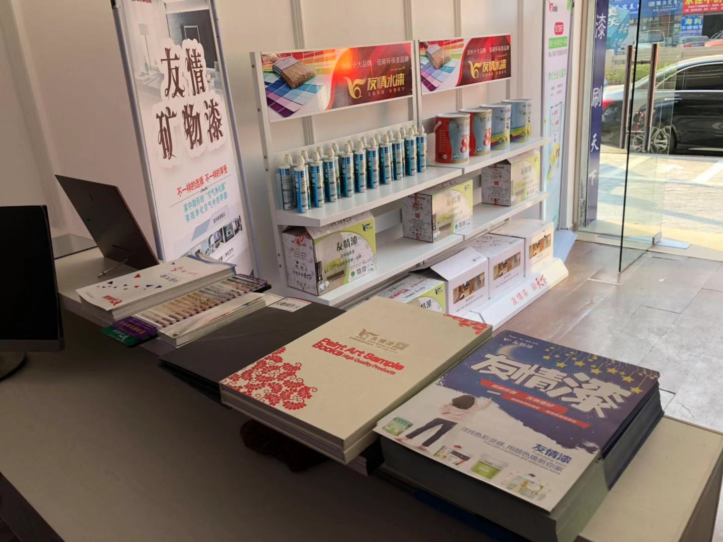 友情漆曲江油漆代理店產(chǎn)品陳列區(qū)之一