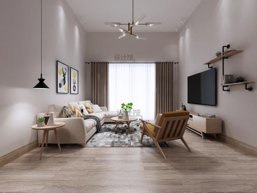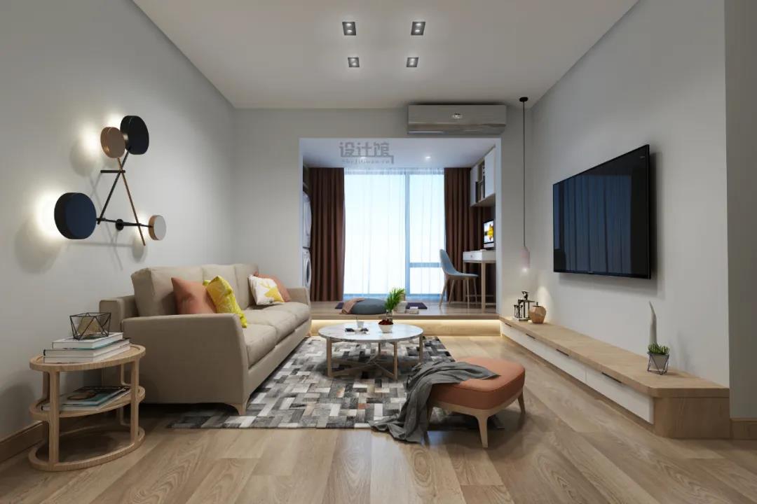 ▲咖色墻面的客廳,簡(jiǎn)單而溫馨。