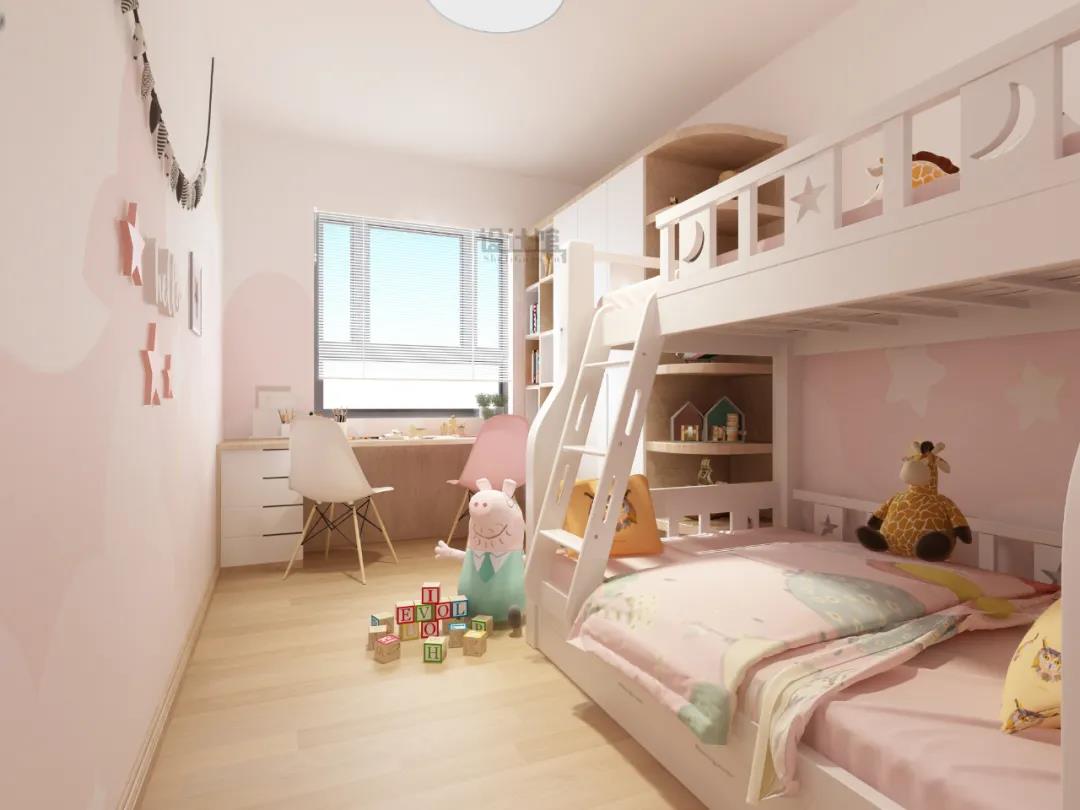 ▲如果是女孩房,用粉色來刷墻面,效果也是相當(dāng)?shù)臏厍槔寺?/em>