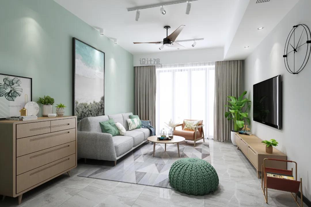 ▲淡綠色的墻面,配上綠植與綠色的軟裝配飾,使得客廳充滿生機(jī)感。