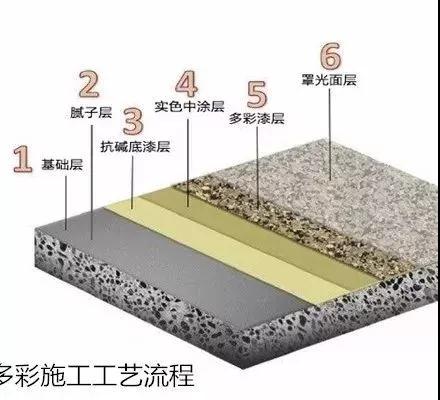 外用柔性膩子、封閉底漆、水包水多彩涂料底涂、水包水多彩涂料中涂、水包水多彩涂料面漆等。